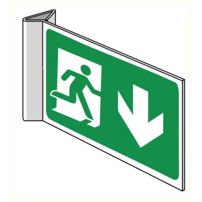 Dit veiligheidspictogram duidt de meest gebruikelijke evacuatieweg aan die te volgen is in geval van nood.
